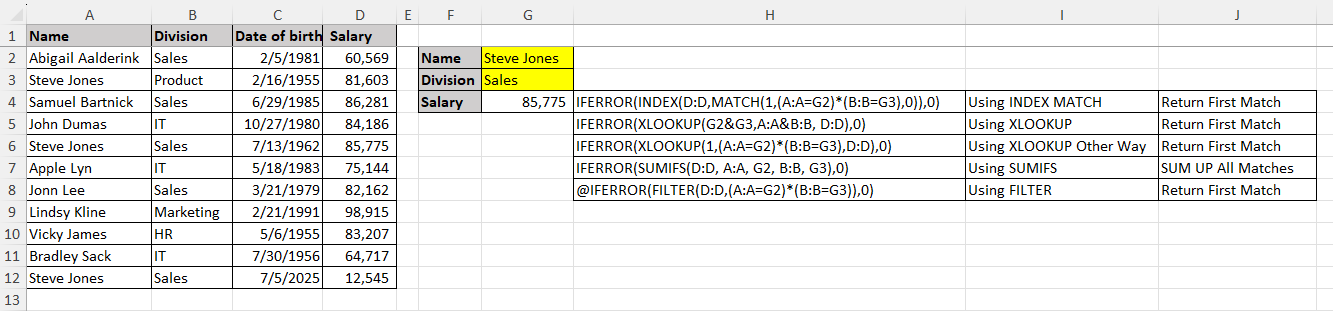 158. Excel Index Match for Multiple Criteria. Example table below to find out sales.